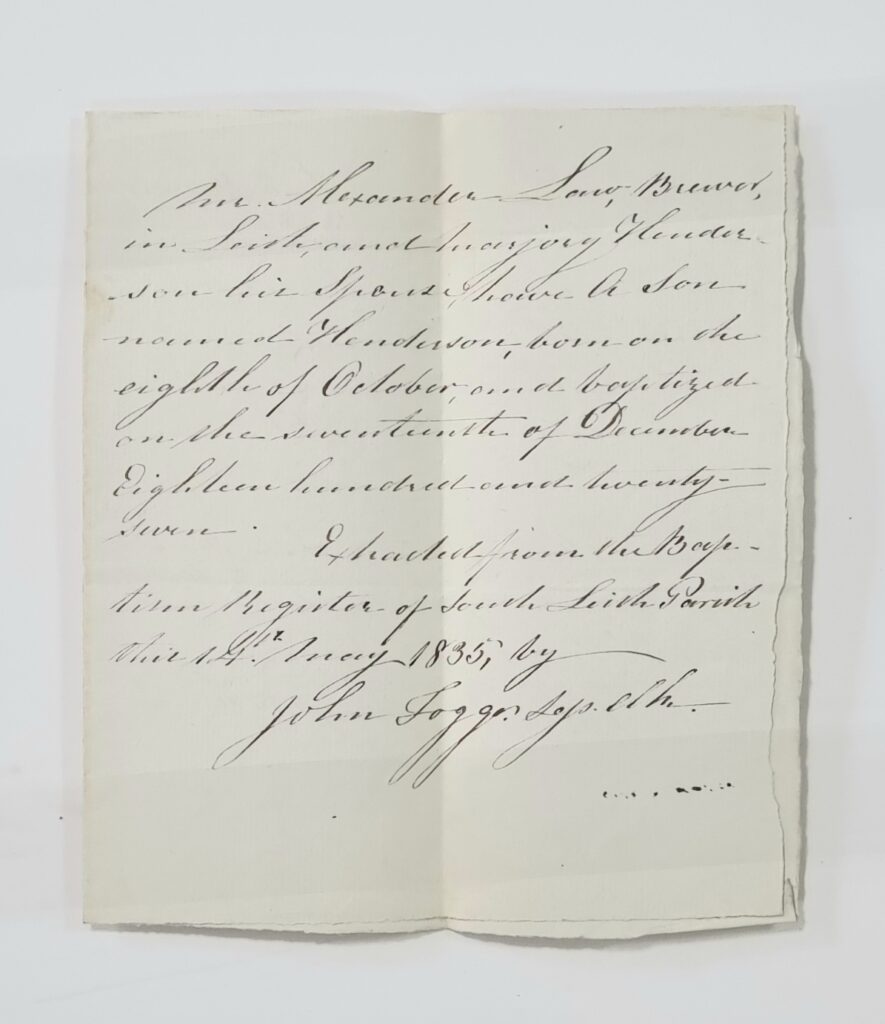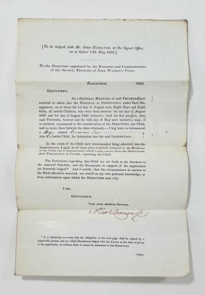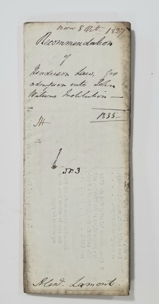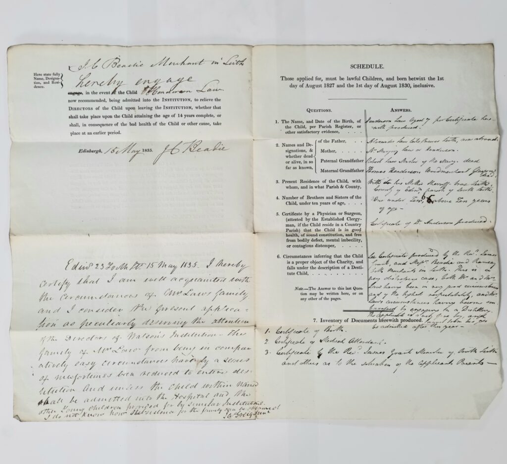Henderson was admitted to John Watson’s Institution in 1835.
