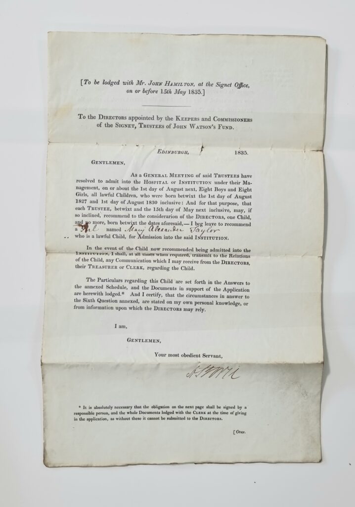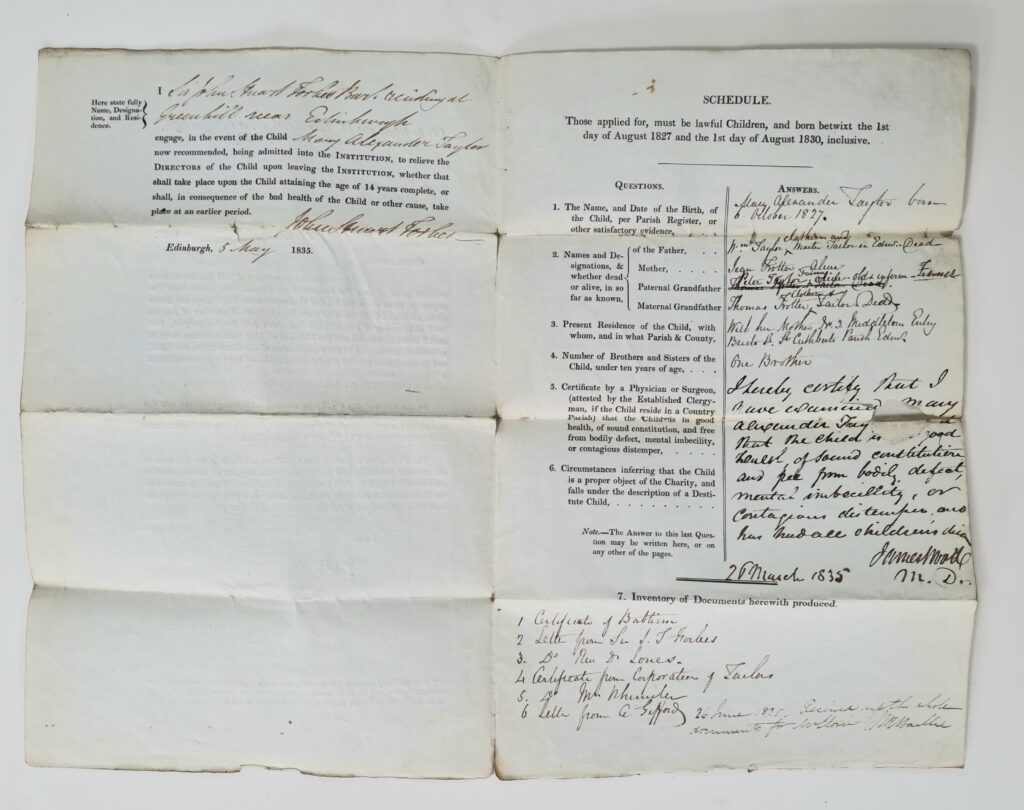 Mary Alexander Taylor was born in Edinburgh on 6 October 1827. Her father William had been a clothier and master tailor who died in 1833. Her mother Jean Trotter was trying to support a family of five.